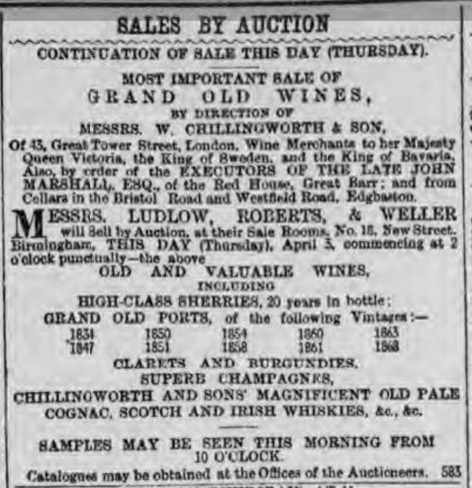 Other sales of the Late John Marshall's effects occurred over the next few years with a sale of paintings and a sale of fine wines.