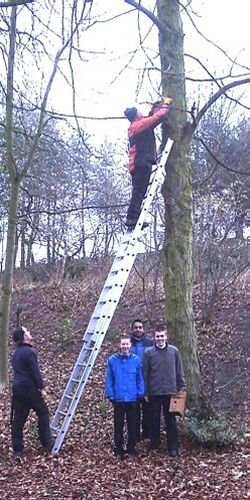 Seen here are Stephen Sidhu, Stephen Rooker and Ethan Tolley, from Dartmouth School as the first of the bird boxes are installed.