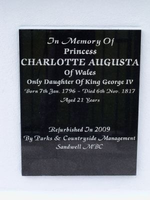 The Monument is shown on the 1890 map as being "in memory of Princess Charlotte". Princess Charlotte, the only child of the Prince Regent and presumed heir to the British throne died in childbirth in November 1817. [reference]